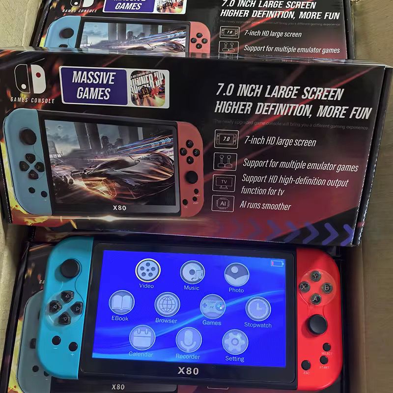 💪 Le X80 est léger, transportable, et fonctionne sur téléviseur ou écran portable — parfait pour jouer partout, à tout moment !
